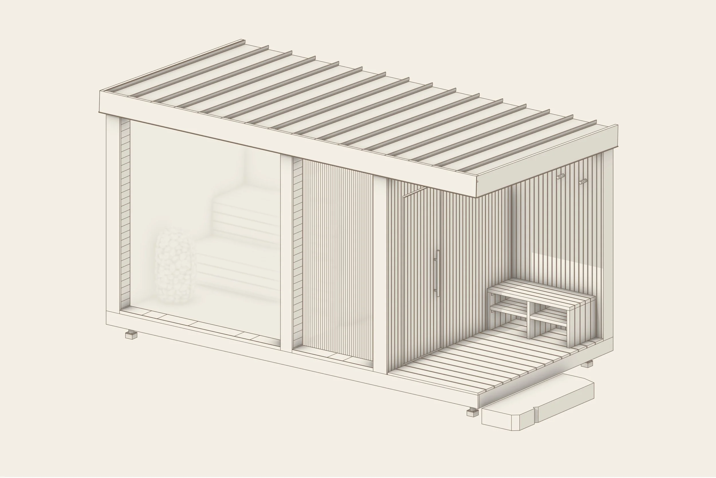 Features an exterior deck and bench, providing a comfortable space to cool off between sessions.