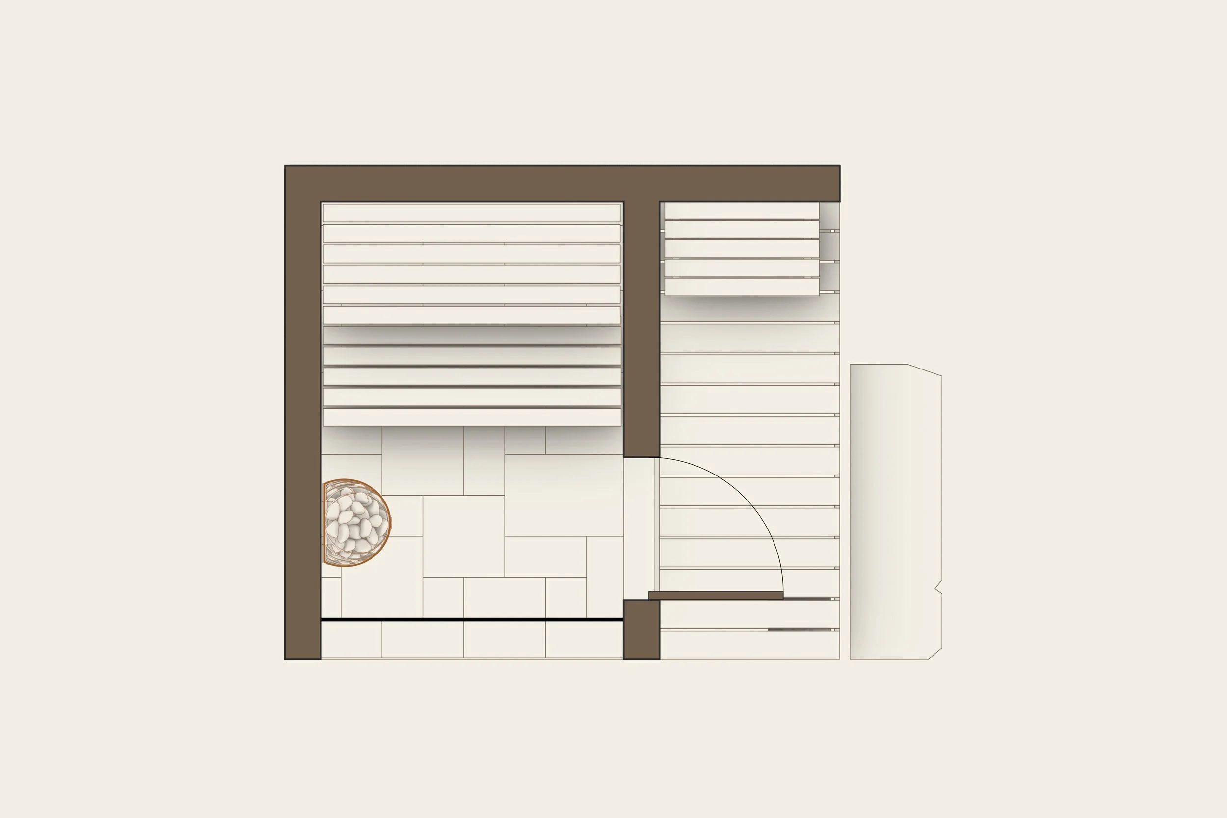Seats up to two people with a two-tiered bench for flexible seating and heat distribution.