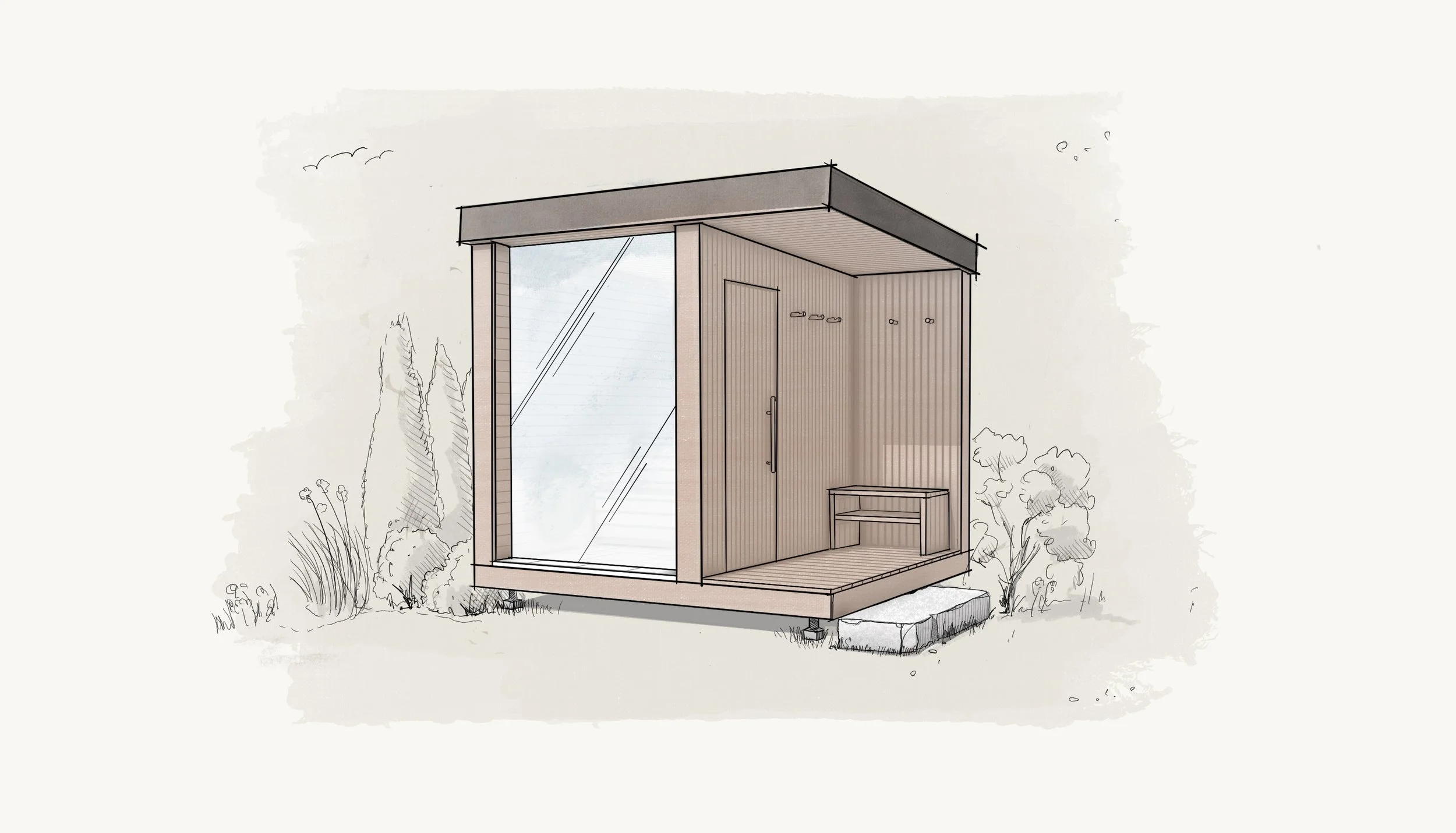 Includes an exterior deck and bench, offering a refreshing spot to cool off between sessions.
